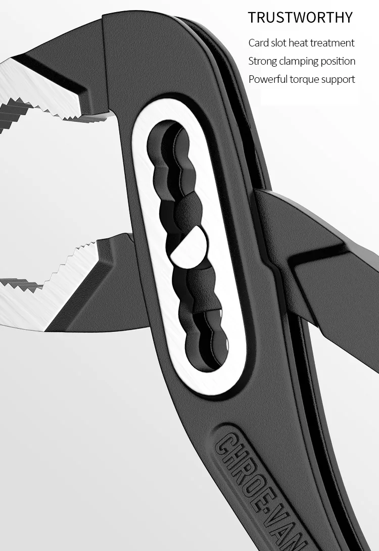 This professional multifunctional water pump pliers made of chrome vanadium steel, with 8 openings, is suitable for more use scenarios.
