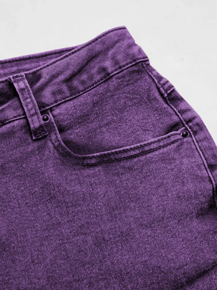 Ladies' vintage purple flared jeans. Distressed, elastic, slimming, casual, mid-rise jeans.