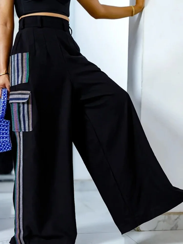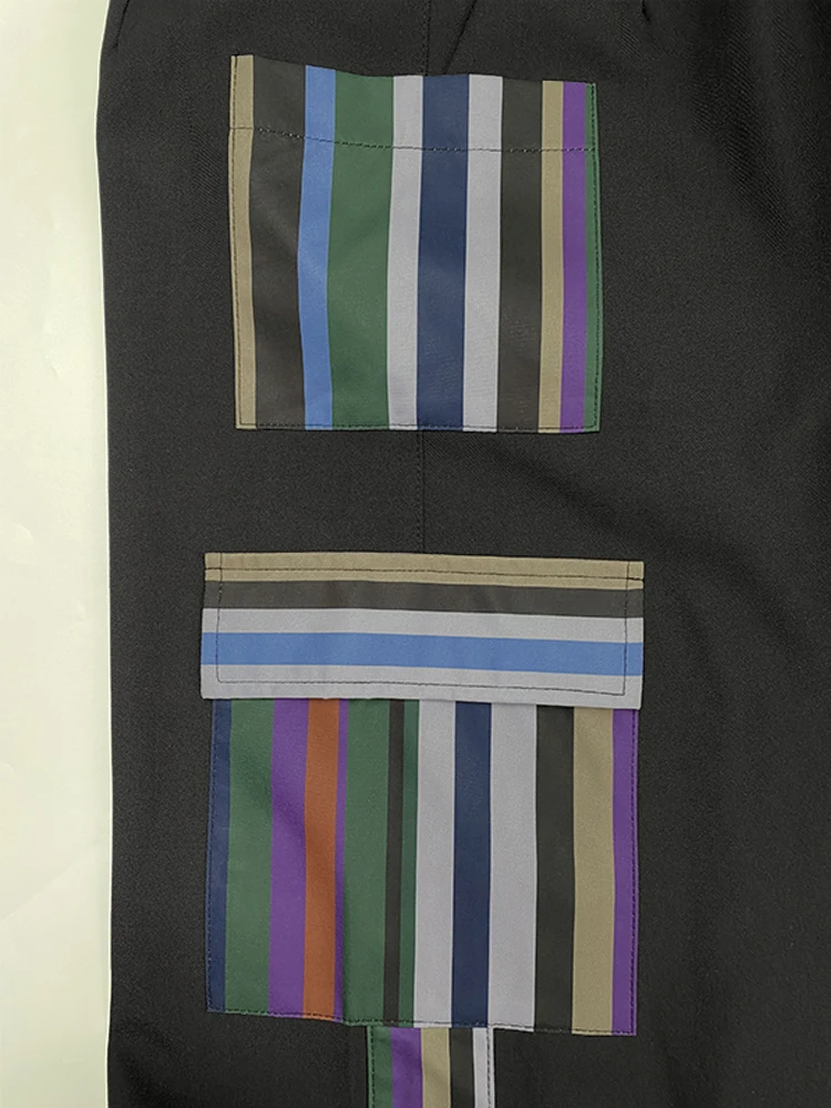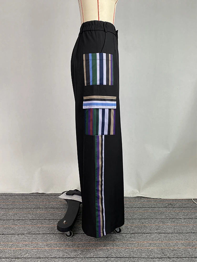Street Casual Style Cool Girls Trousers Contrast Color Pocket Stripe Design Bottoms Pants For Woman 2025 New In Clothing