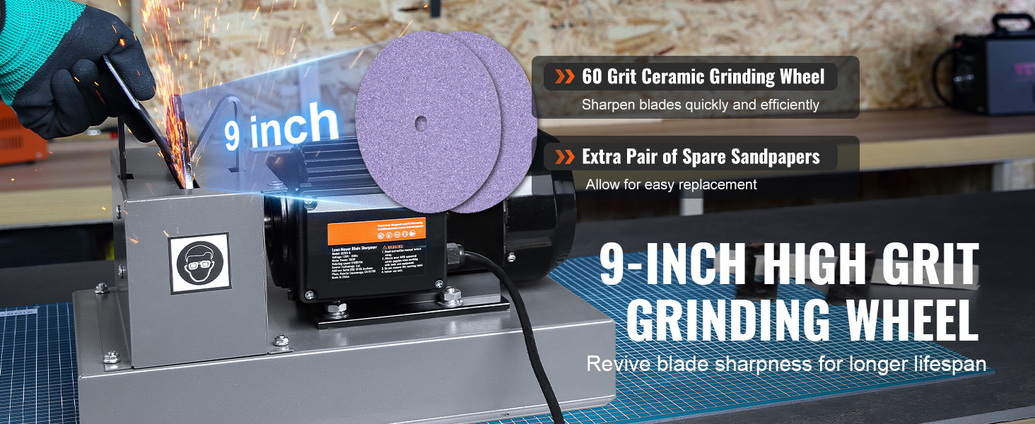 SucceBuy Lawn Mower Blade Sharpener 750W Lawnmower Blade Grinder 9-inch Ceramic Grinding Wheel Bench Mower Sharpening Machine
