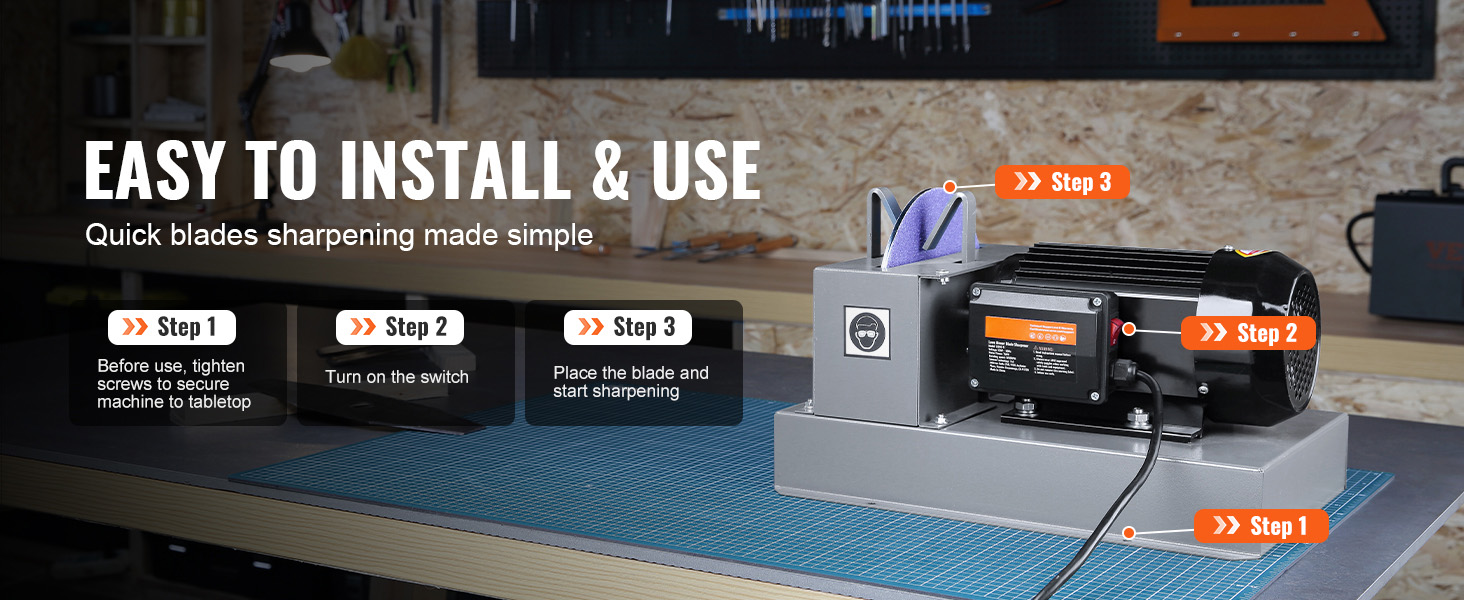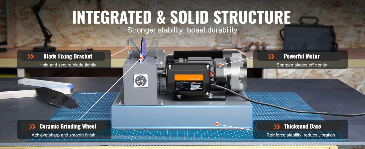 Reliable Stability for Smooth Sharpening: Designed with an integrated structure, solid steel base, and secure blade fixing brackets, this sharpener minimizes vibrations and ensures smooth, steady sharpening, simplifying your tasks.