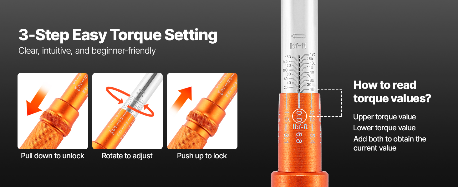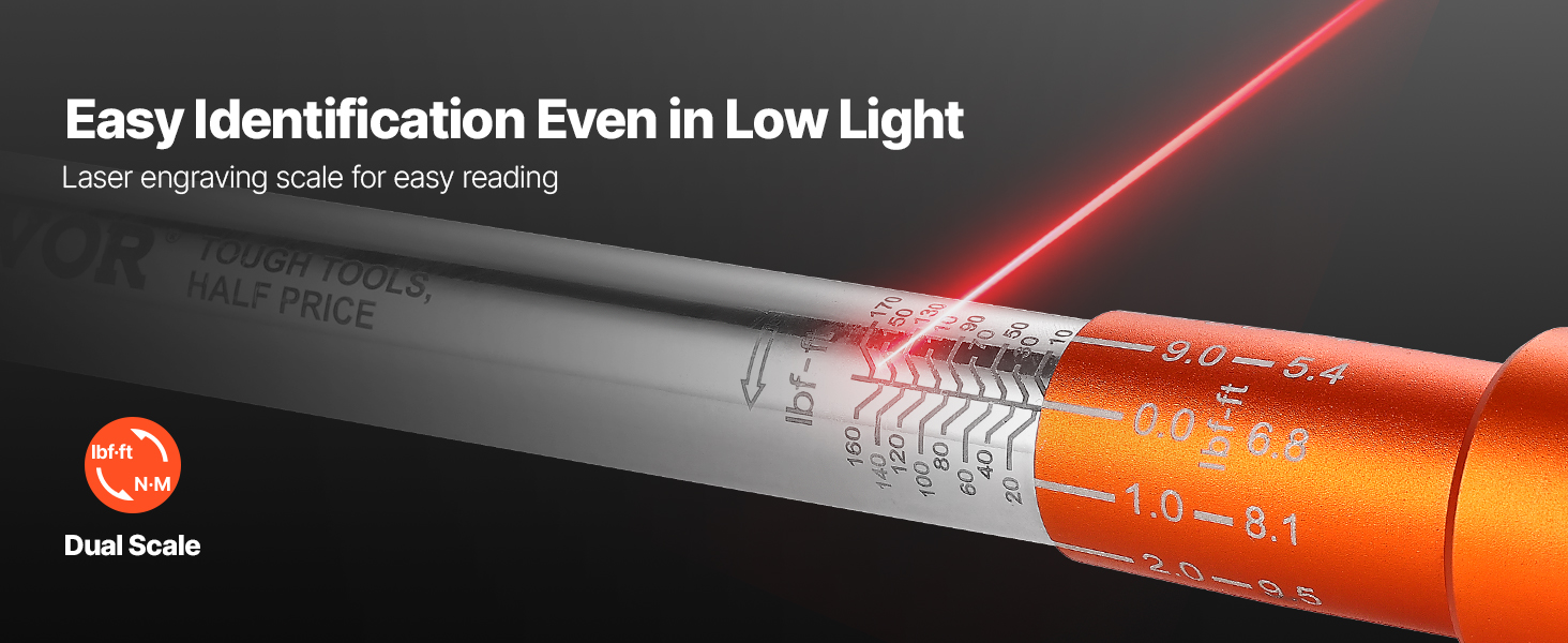 Easy to Read: The dual-direction torque wrench features laser-etched dual-range scale that's easy to read and highlighted for clear visibility. Even in low-light conditions, readings are easy to identify, with durability in tough work environments