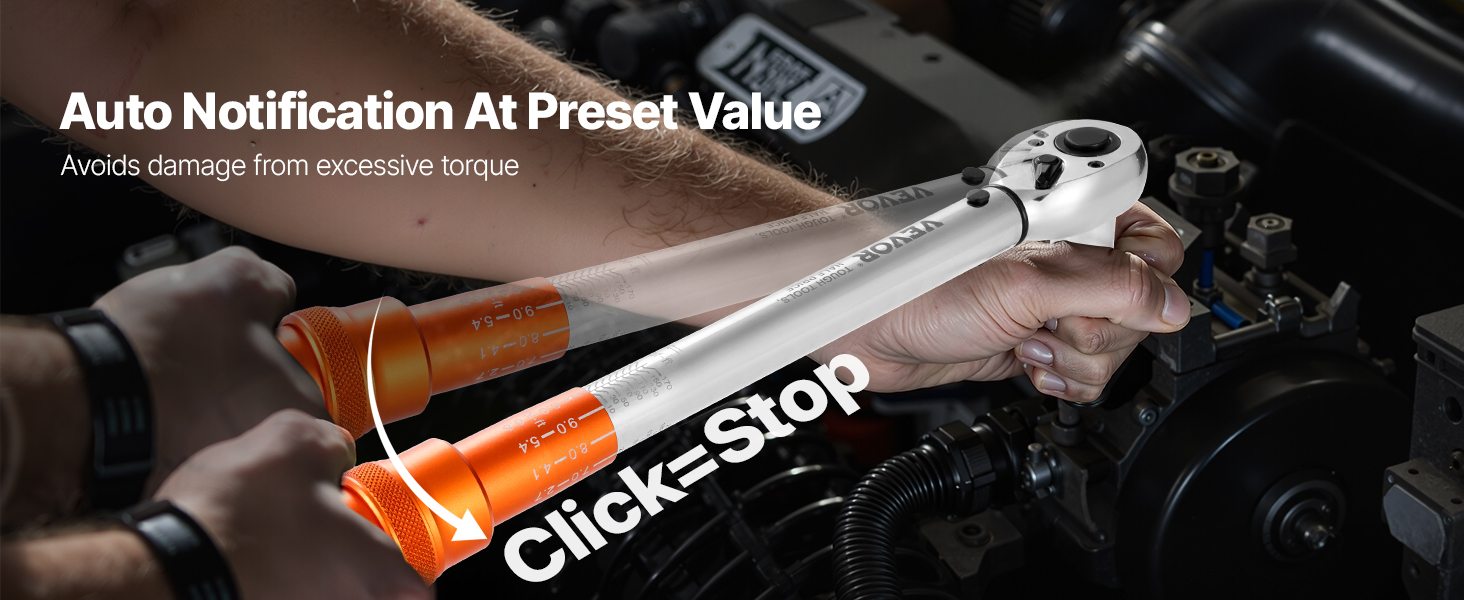 Durable Construction: Our click torque wrench is made from high-quality alloy steel with a six-stage heat treatment process. The chrome-plated surface is rustproof, providing a smoother finish that's easy to clean
