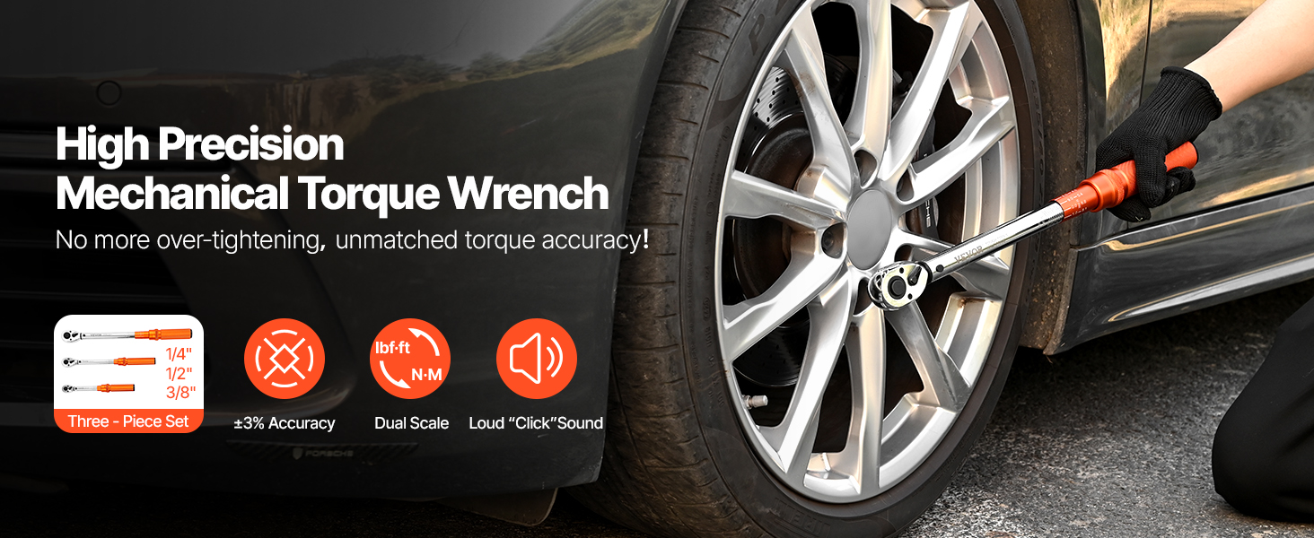 High Precision: With an accuracy of ±3%, each torque wrench comes with a calibration certificate, ensuring precise torque application to fasteners on vehicles or equipment, avoiding component damage
