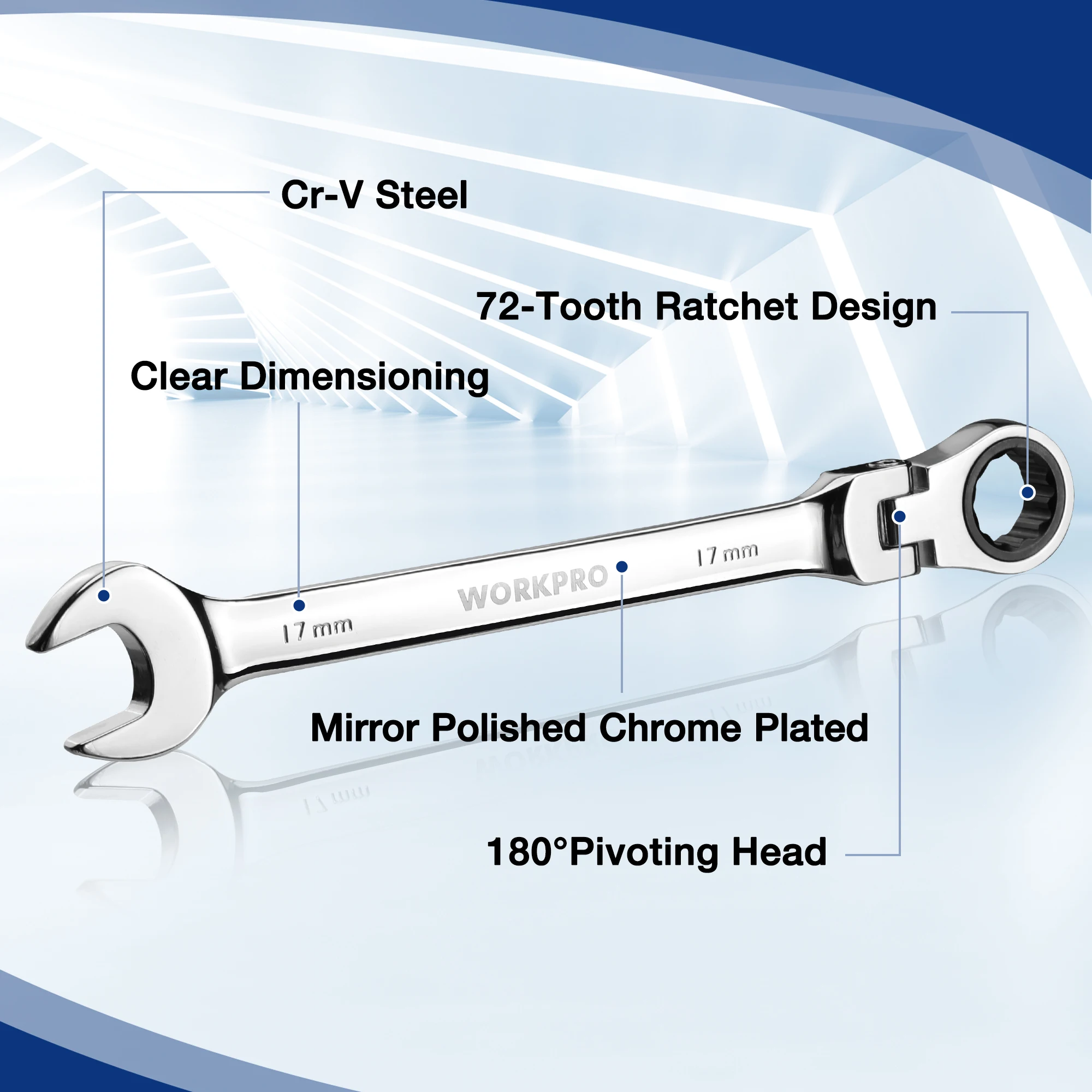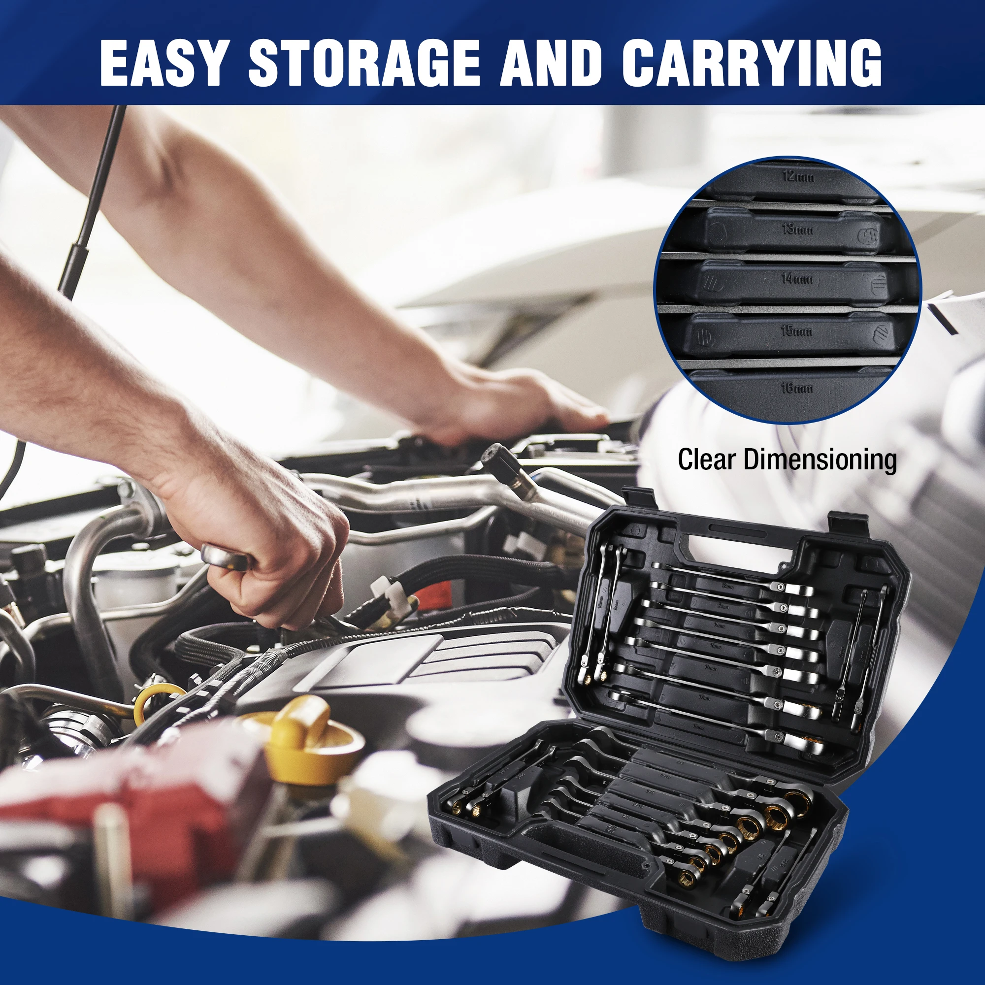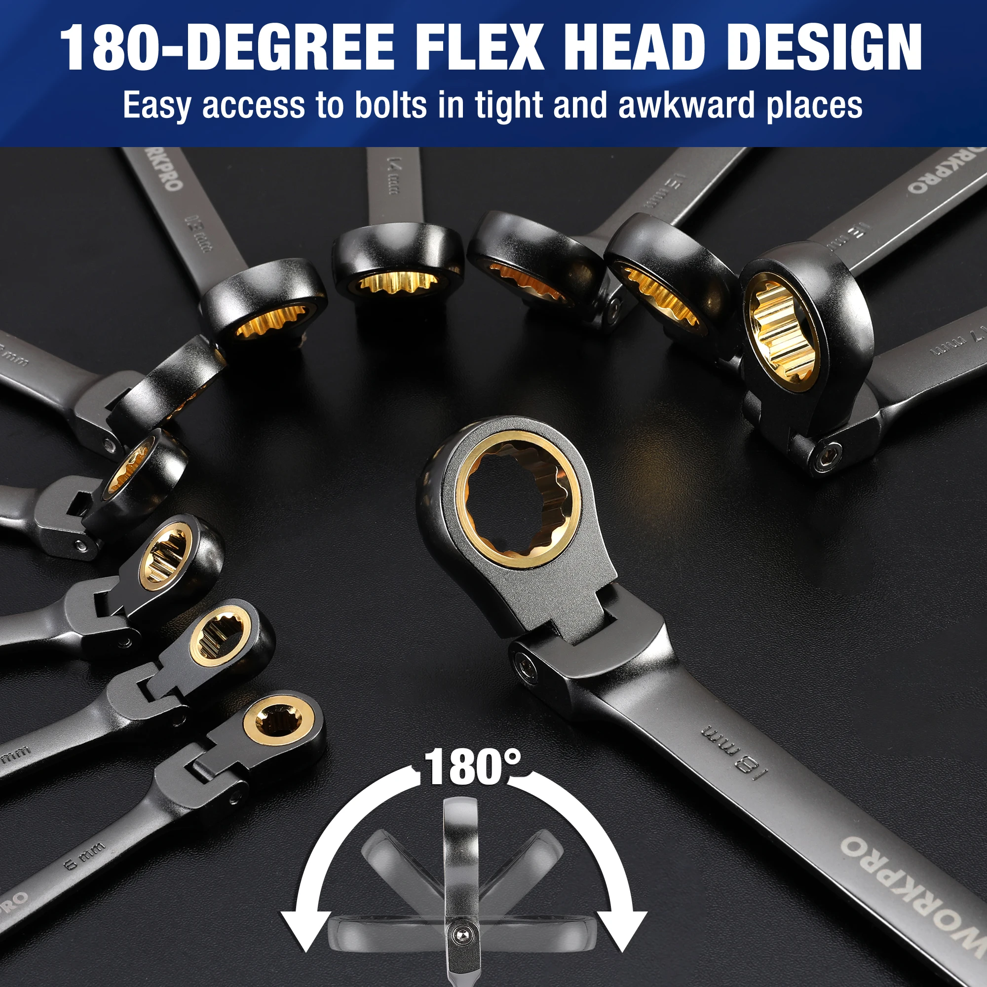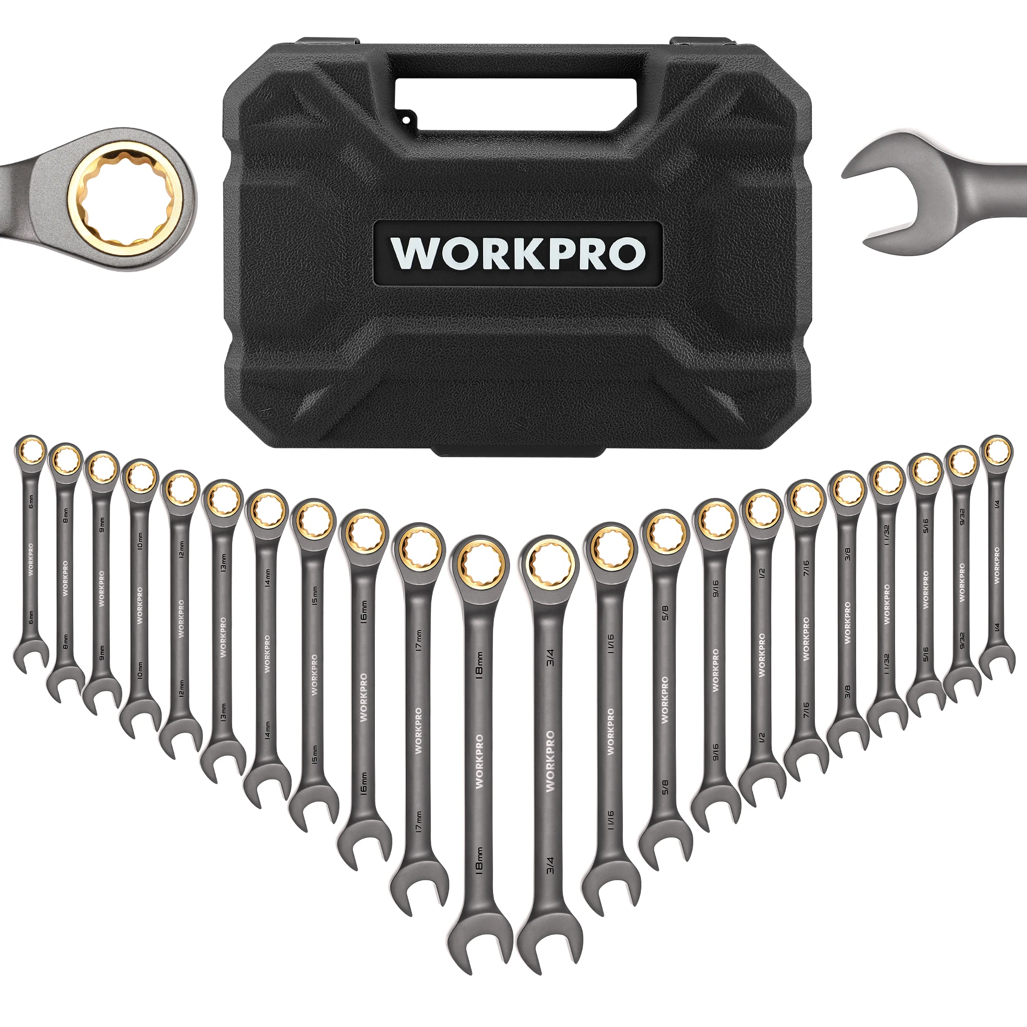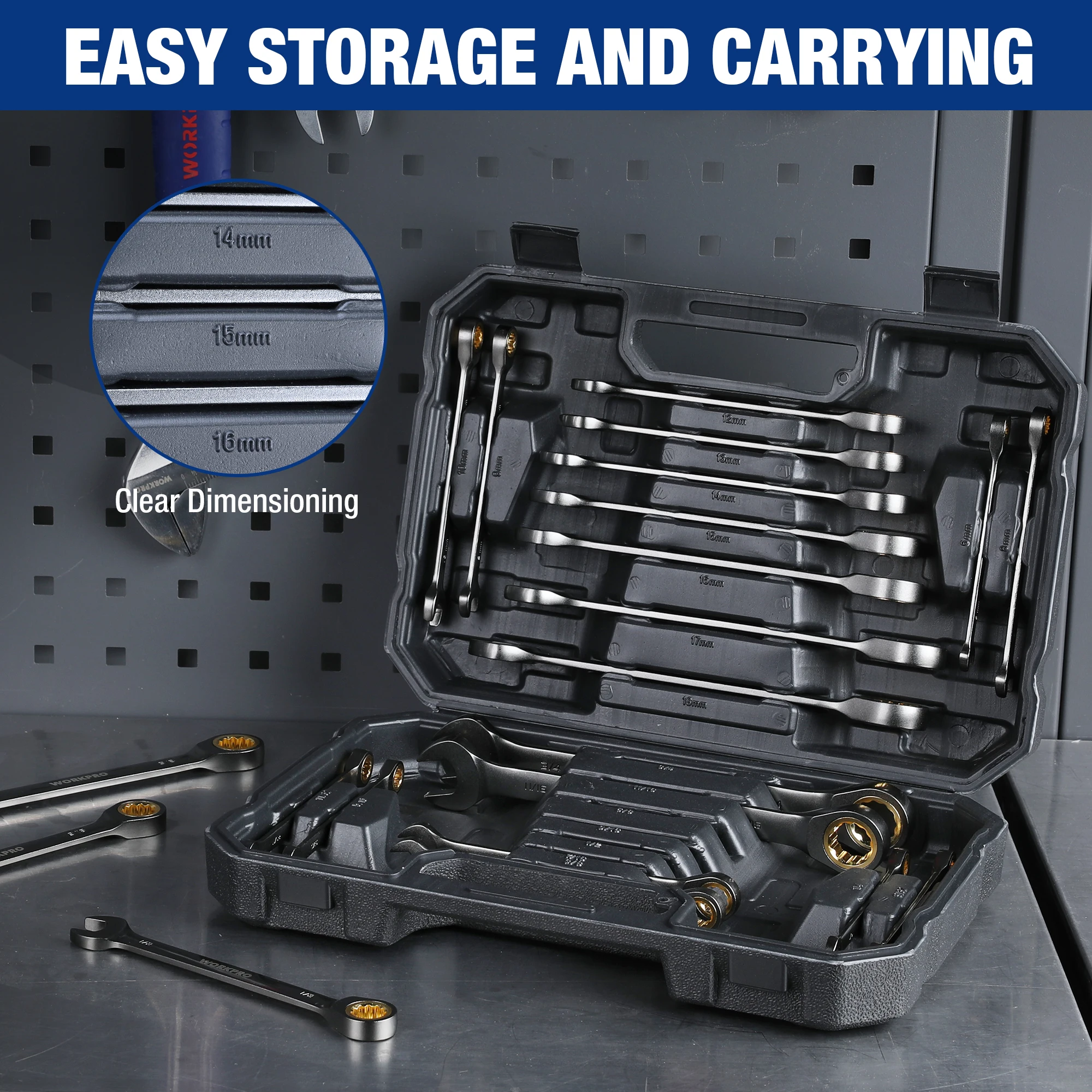 WORKPRO 22pcs Ratcheting Wrench Set Flex-Head Ratchet Combination Wrench Sets with Organizer Box 72 Teeth